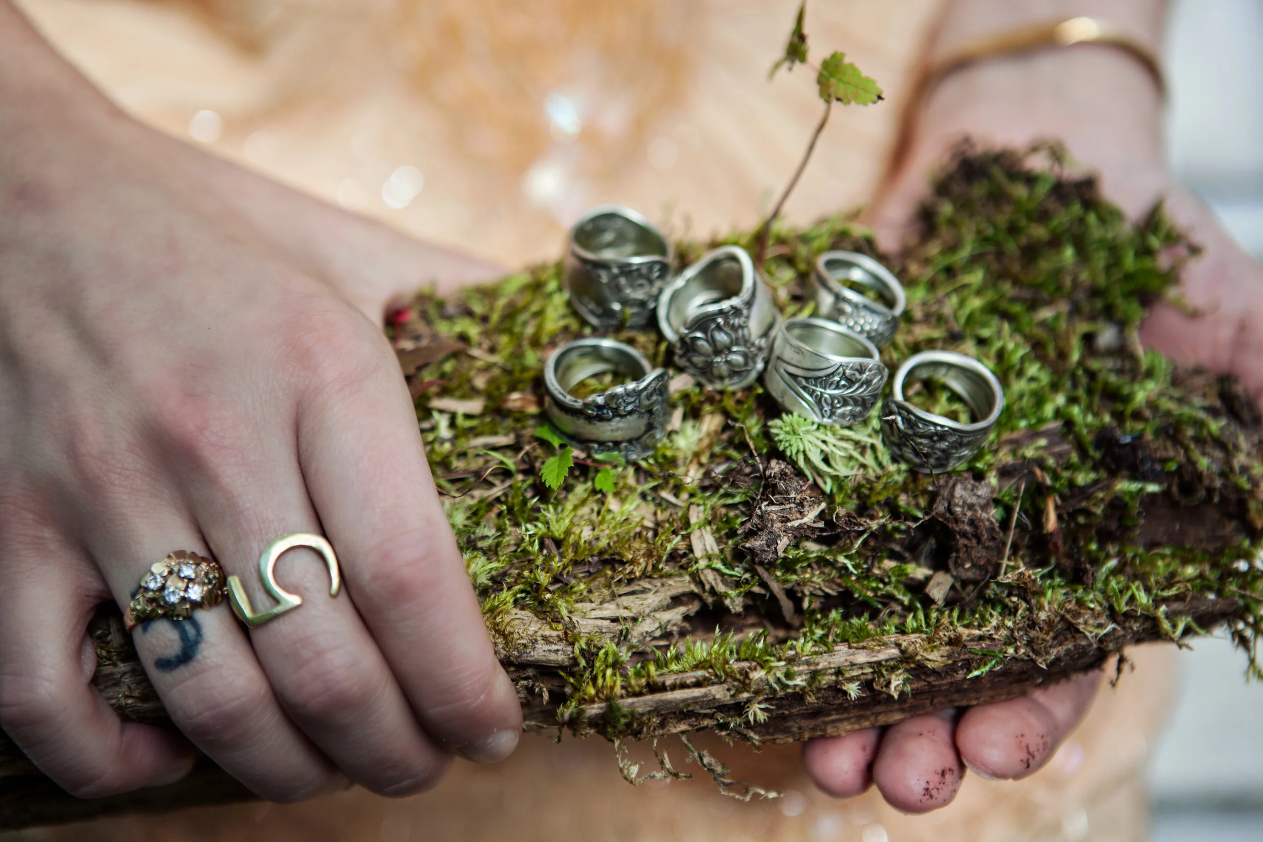 “I was so happy to find such a unique and personalized gift to share with my bridesmaids on my wedding day. I’ve always been drawn to all things vintage, and spoon rings were the perfect accessories when it came time for them to stand beside me as I said I do. It was great to see how the rings related to each girl differently. My sister used to wear one when she was little which brought back some great memories from our childhood, while another girl noticed the design on hers was similar to her great grandmother’s silver. Recently, I got to reunite with some of them that live in other cities now, and was overjoyed to see that they were still wearing the rings!”